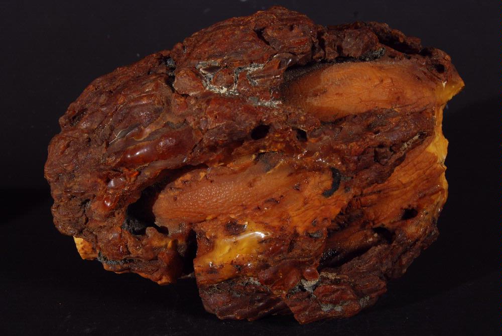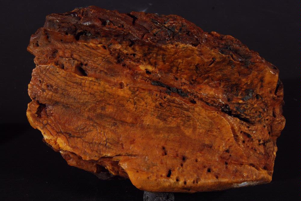 • Den konkava sidan är en avgjutning av en trästam, den konvexa sidan visar flytlager av före detta kåda