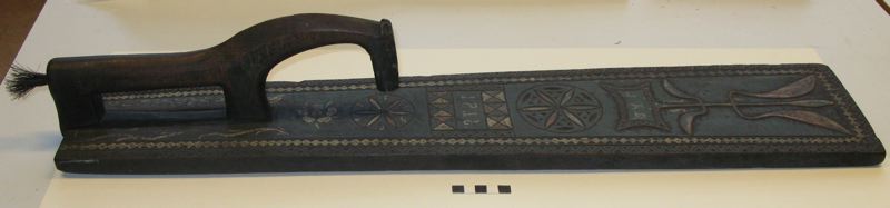 • Mangelbräda från 1816. Den äldsta typen av mangel bestod av en kavel, på vilken textilen rullades, samt ett mangelbräde, som pressades mot kaveln samtidigt som den fördes fram och tillbaka.