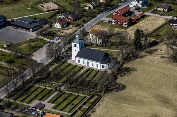 Flygfoto över Skede kyrka i Vetlanda kommun.