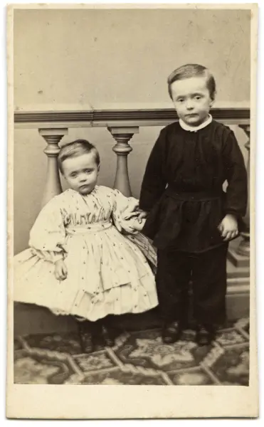 Porträtt på två barn i helfigur.