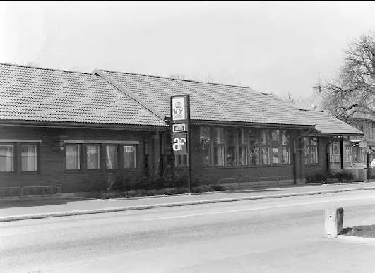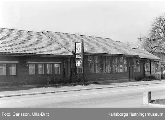 • Karlsborg, Storgatan. Posthuset med Arbetsförmedlingen och Systembolaget. Foto: Ulla-Britt Carlsson år 1991.