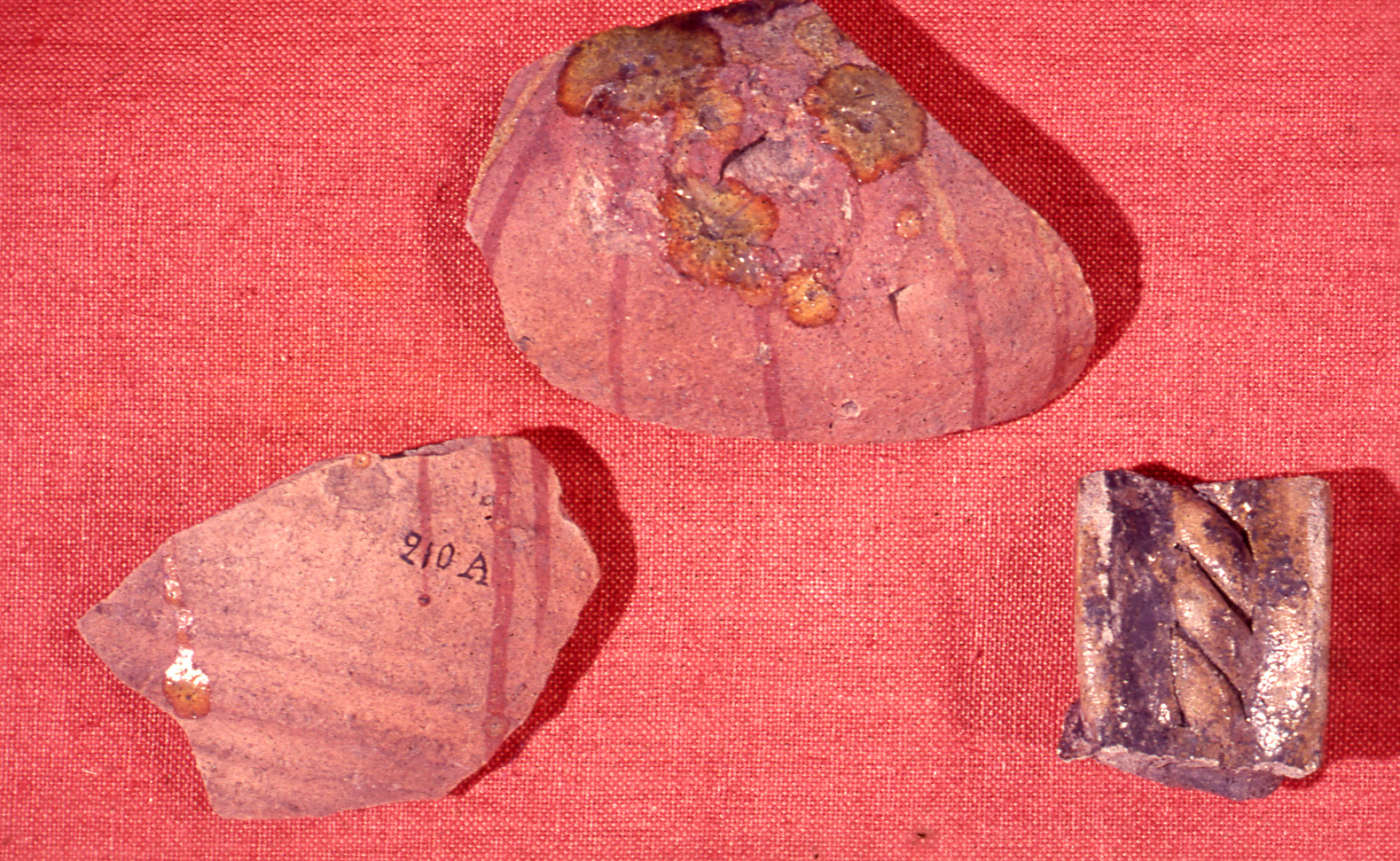 • Lundaarkeologiska avdelningens fotonegativ. Lund. Kv. S:t Clemens 8. Pingsdorf-liknande keramik med målad dekor, KM 21777, KM 21774, KM 2181-.