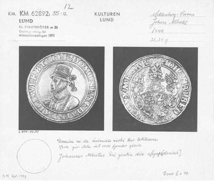 • Daler. Mechlenburg-Schwerin. Johan Albrekt. 1549.