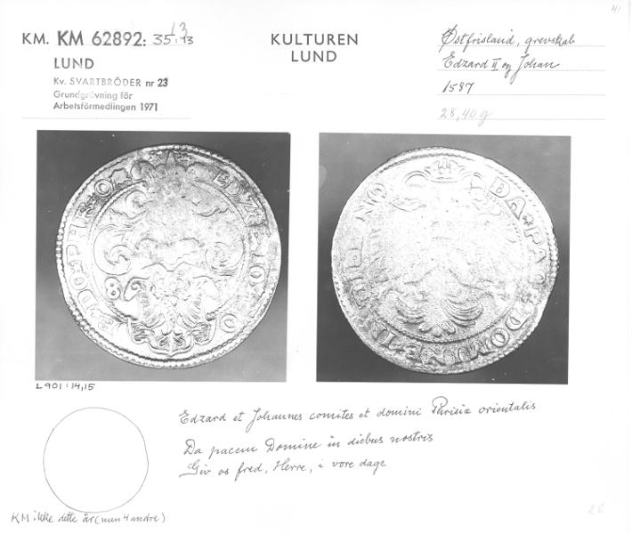 • Daler. Östfrisland. Edzard II o. Johan. 1587