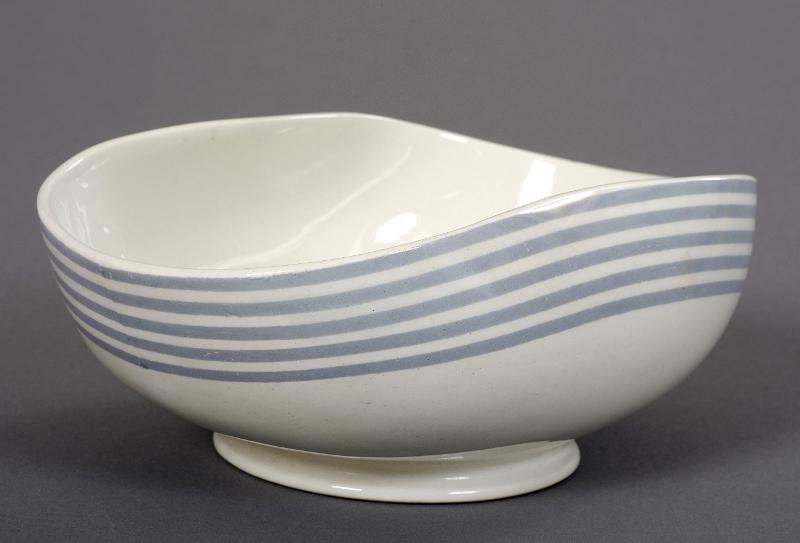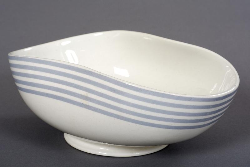 • Målad dekor av band med fem grå rände.