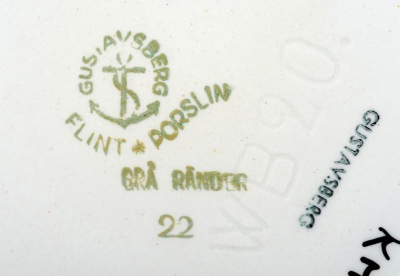 • Gustavsberg, ankarmärke, Flint 6 porslin, GRÅ RÄNDER. Inpressat WB