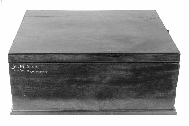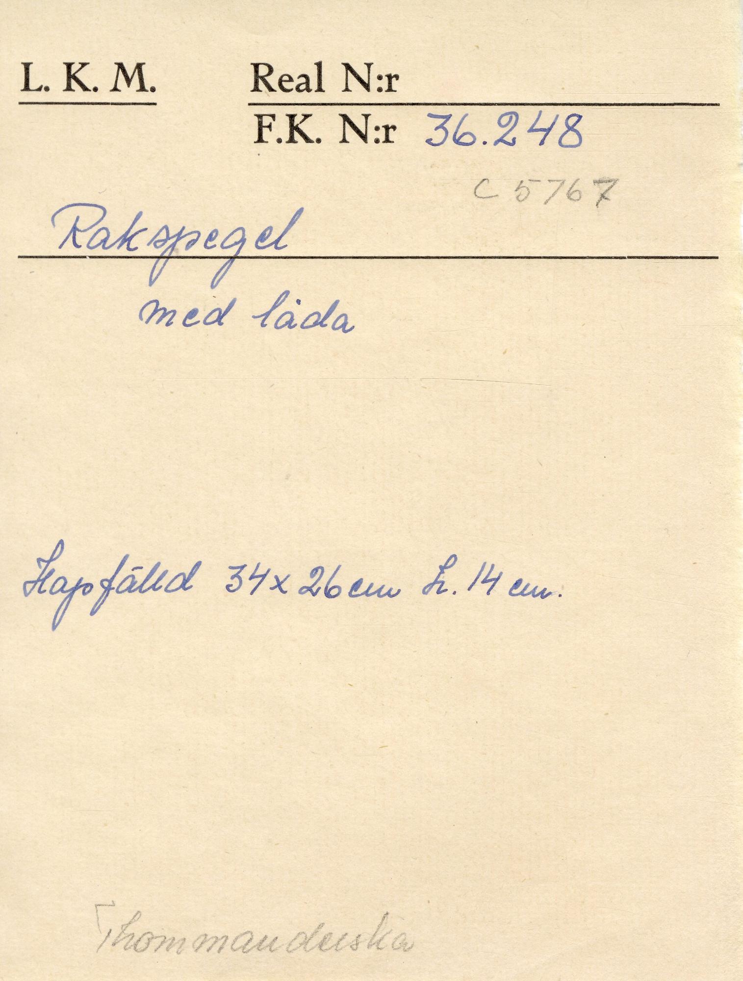 • Rakspegel med låda. Hopfälld 34 x 26 cm, h. 14 cm. Thommanderska.
