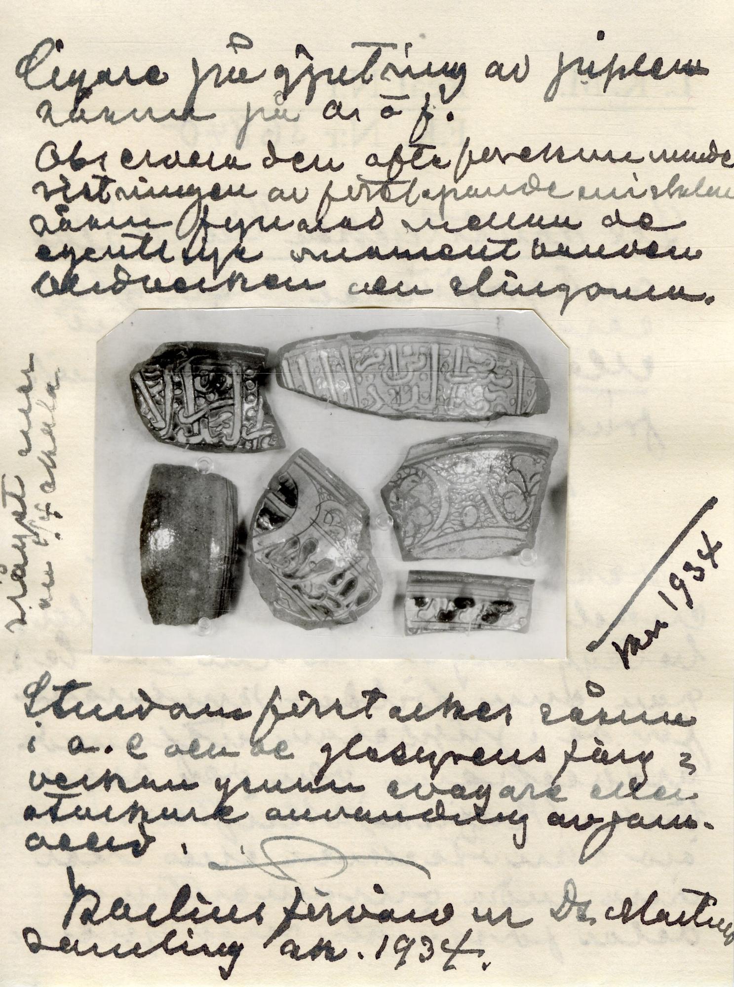 "Fragment av kanten till en skål med islamisk inskrift, 12-13-talet. Fostat, Egypten." Kulturens årsbok 1959, Kjellberg Sven T, Islamiskt, s. 70-115, bild 6 s. 87.