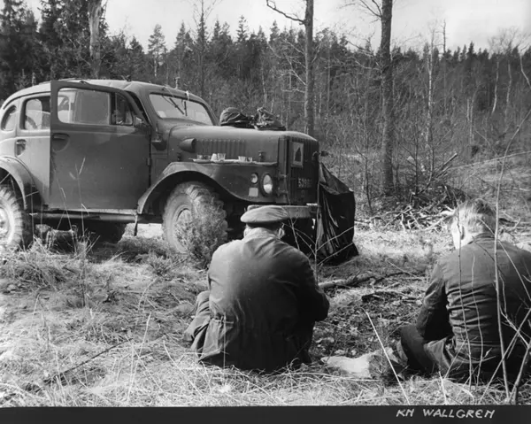 Volvo radiopersonterrängbil 915. Kapten Wallgren till höger.