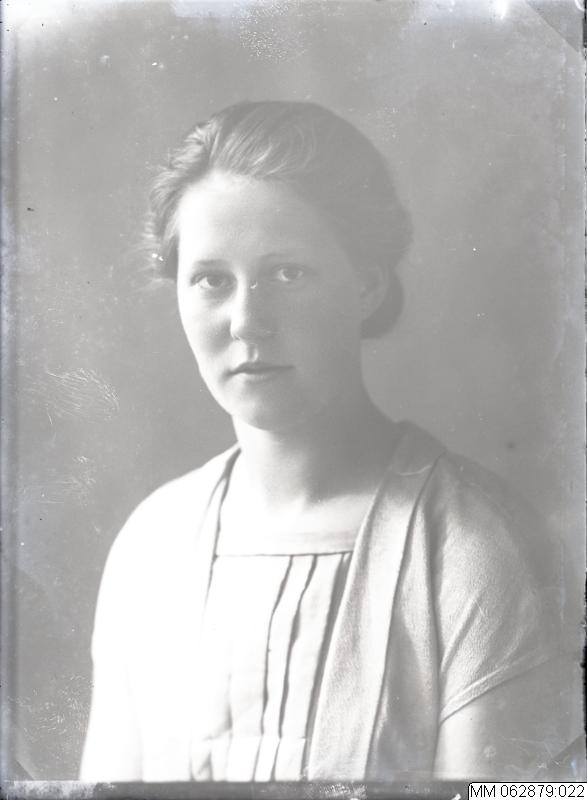 • Porträtt på Astrid Nilsson. Med negativ fanns datumblankett med skriften "Astrid Nilsson, Adr: Storg. Östersund". Datum okänt.