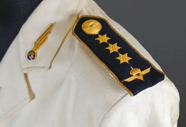 Kavaj, ämbetsuniform för Luftfartsverket. Vit, enkelknäppt med svarta axelklaffar med tre stjärnor, Luftfartsverkets emblem och knapp med Luftfartsverkets emblem av guldfärgad metall. På kragen Luftfartsverkets emblem.