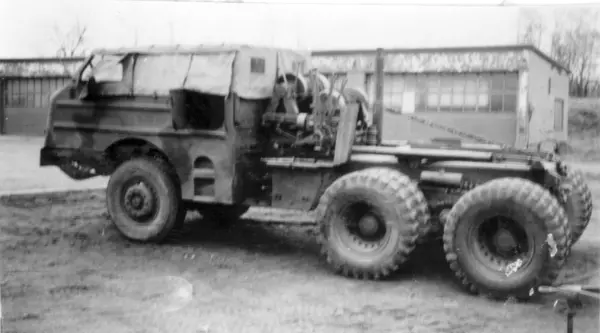 Amerikansk dragbil M26 A1, på garageplan P 4 i Skövde.