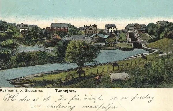Orig. text på vykortet: Kvarnarna o. Slussarna. Tannefors.