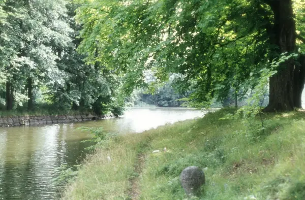 • Bilden tagen utefter Stångån/Kinda kanal i Nykvarnsparken. Kinda kanal öppnades som farled 1871 och certifierades året därpå.