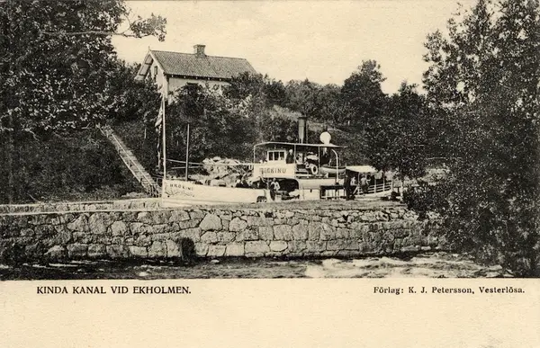 Orig. text: Kinda kanal vid Ekholmen.Kinda kanal öppnades som farled 1871 och certifierades året därpå.