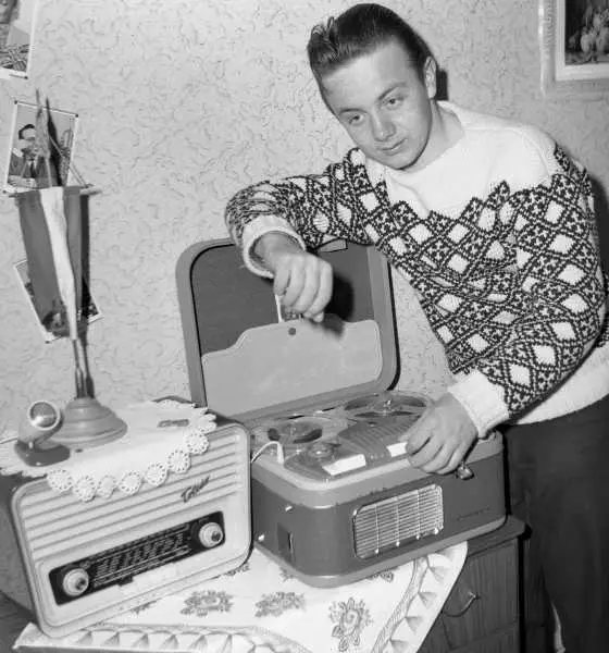 • Josef Bader visar upp sin radio och rullbandspelare i sitt hem. Metallarbetare i verkstaden på Forsviks bruk.