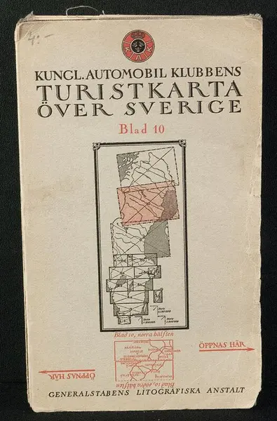 • Karta. "Kungliga automobilklubbens turistkarta över Sverige". Del 10 av 11. Baksida med antydan till foxing.