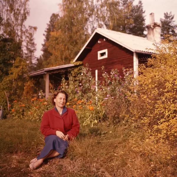 • I den blommande sluttningen nedanför Vikstentorpet sitter Adéle Mickelsson.