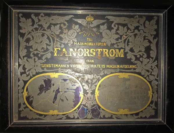 Så heter det i Göteborgs handels- och sjöfartstidning d. 30/12 1890. En vacker hyllningsgärd bragtes i går afton maskin-direktören Aug. Norström, hvilken vid årets slut lemnar sitt chefskap för 2:dra trafikdistriktets maskinafdelning vid Sveriges statsbanor. Från nästan samtliga maskinstationer i det vidsträckta distriktet, som sträcker sig till Örebro, Mjölby och Nässjö, hade samlats deltagare i festen af olika tjenstegrader vid maskinafdelningen, hvarjemte voro närvarande representanter för byrå-, ban- och trafikafdelningarna, jernvägsläkare och juridiska ombud, hvilka önskade bjuda den omtyckte chefen och kamraten sitt tack och farväl. Bandirektören A. Isberg tackade den afgående kamraten för ett godt samarbete och maskiningeniör F. W. H. Pegelow tolkade de underordnades känslor af tacksamhet och tillgifvenhet för sin omtyckte chef.