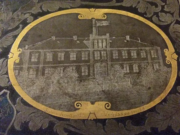 Vid samma tillfälle öfverlämnades som minnesgåfva åt hedersgästen ett dokumentskåp, försedt med artistiskt utförda beslag, dekorerade med ståletsningar af ingeniör Bernh. Beskow. På lockets plåt läses: Till maskindirektören F. A. Norström, från tjänstemän vid 2dra distriktets maskinafdelning. Plåten upptager derjemte en karta öfver statsbanornas 2:dra distrikt, en bild af verkstadsbyggnaden i Göteborg och uti mindre vapensköldar årtalen 1858 och 1890, allt utfördt i ståletsningar. På skåpdörrarna äro anbringade etsade plåtar med teckningar, erinrande om mottagarens verksamhet.
