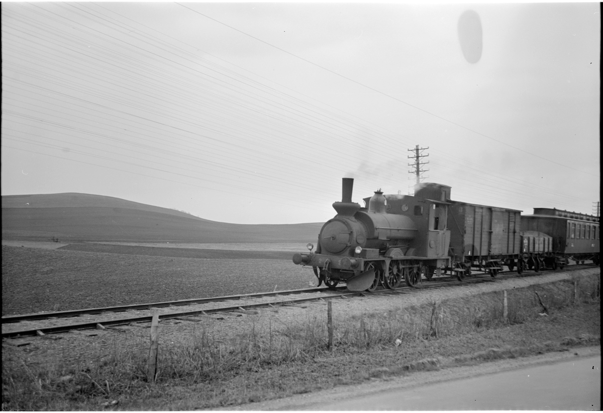 • Malmö - Genarps Järnväg, MGJ lok 2 "Genarp" med tåg någonstans längs linjen.