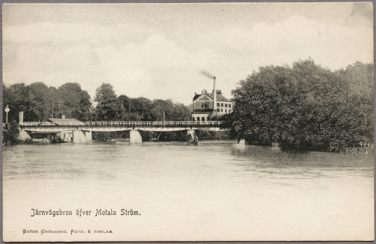 Järnvägsbro över Motala Ström på linjen mellan Fågelsta och Motala.