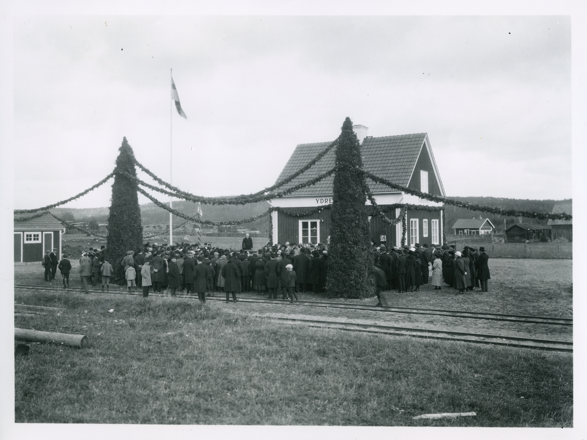 Ydrefors station invigningen 1924. 11 okt 1924 öppnades Vimmeby - Ydre järnväg för trafik ,VYJ. Invigningen var dne 10 oktober 1924.