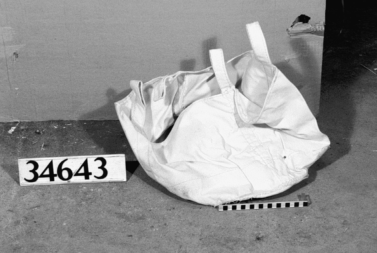 • Silduk av grovt linnetyg, vit med påsydda upphängningshylsor, till formen rund påse.