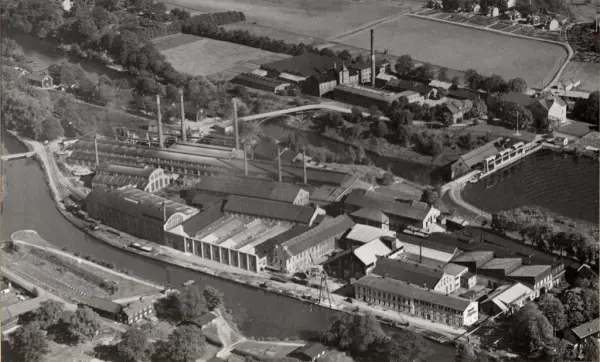 Flygfotografi över Motala Verkstad. Ur album: Motala Verkstad 10 okt 1936.