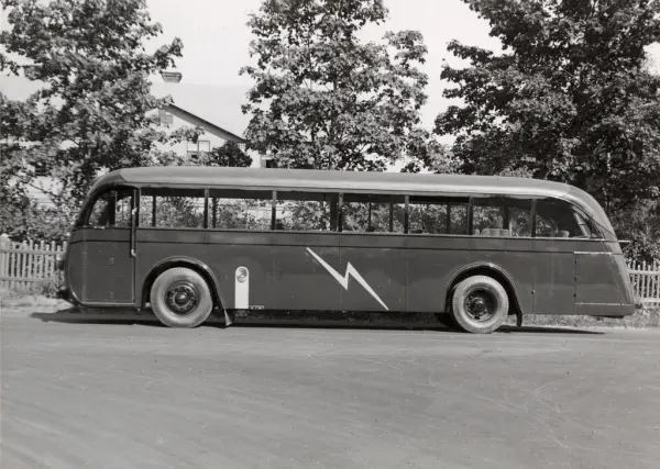 Motala turistbuss. Ur album: Motala Verkstad 10 okt 1936.