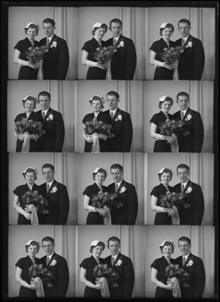 Brudpar. polyfoto. Börje Andersson,Ringvägen 14, Kolbäck.Ur Gustaf Åhmans samling.