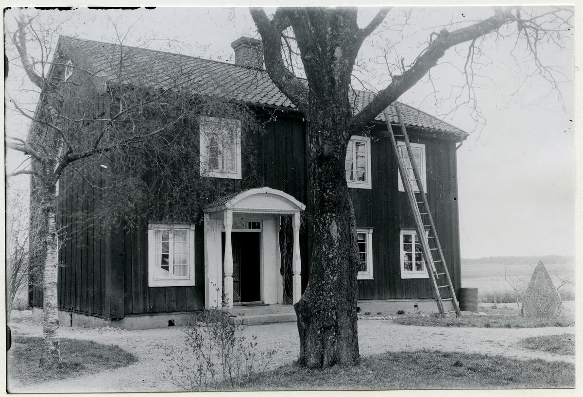 Vittinge sn, Heby kn, Svedan.Gården Svedan med runsten till höger om boningshuset.Fornlämning RAÄ 26:1.
