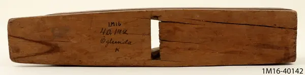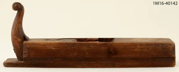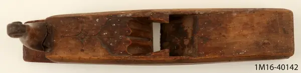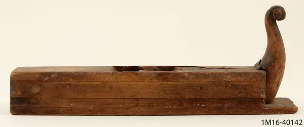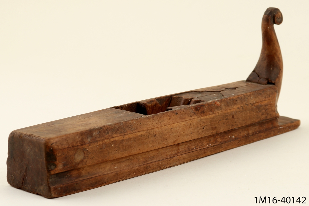 • Hyvel, släthyvel, bredare på mitten, ornerad ovanpå, insvängt handtag.