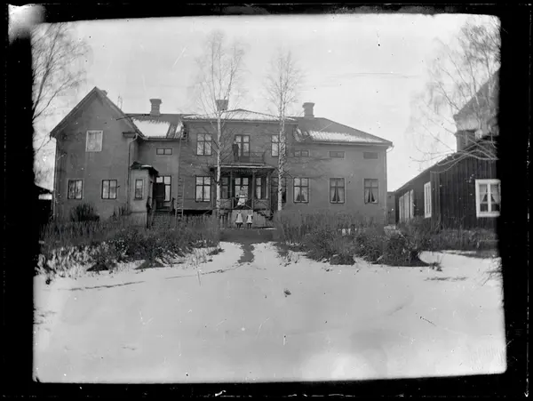 • Familj framför större bostadshus