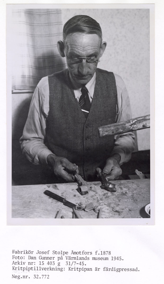 • Anteckning: "Foto av Fabrikör Josef Stolpe från Västby, Åmotfors."