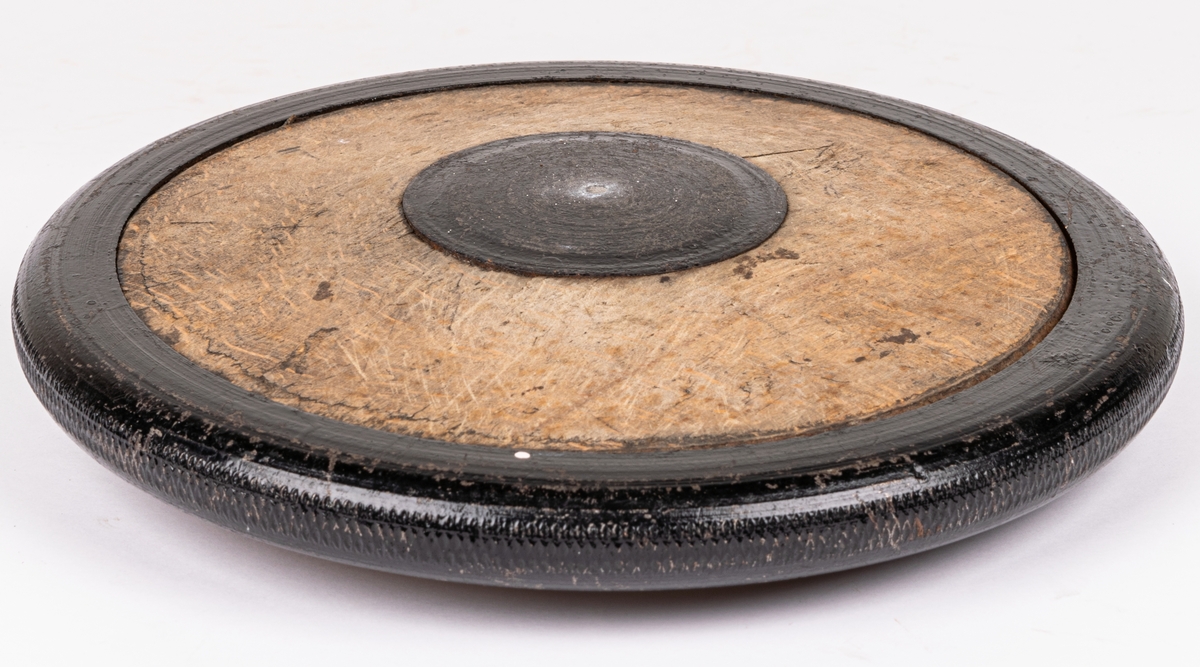 • Diskus av bokträ, järnbeslagen.