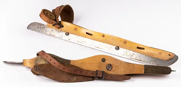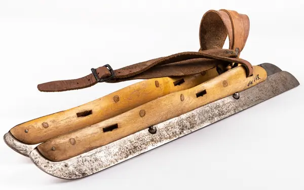 • Skridsko, en stycken, med fotplatta av trä, gulfernissad.