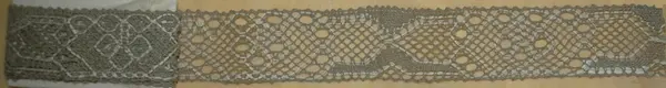 Uddspets, 100 x 4½, oblekt och blekt tråd. 6:-. Mockfjärd.