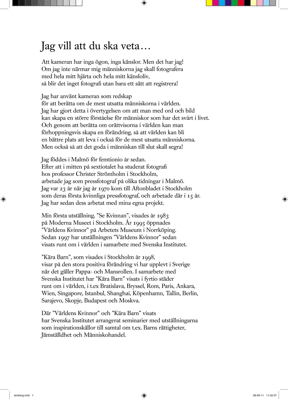 • PDF-dokument med utställningstext till utställningen "Jag vill att du skall veta... Ulla Lemberg fotograf i världen".
