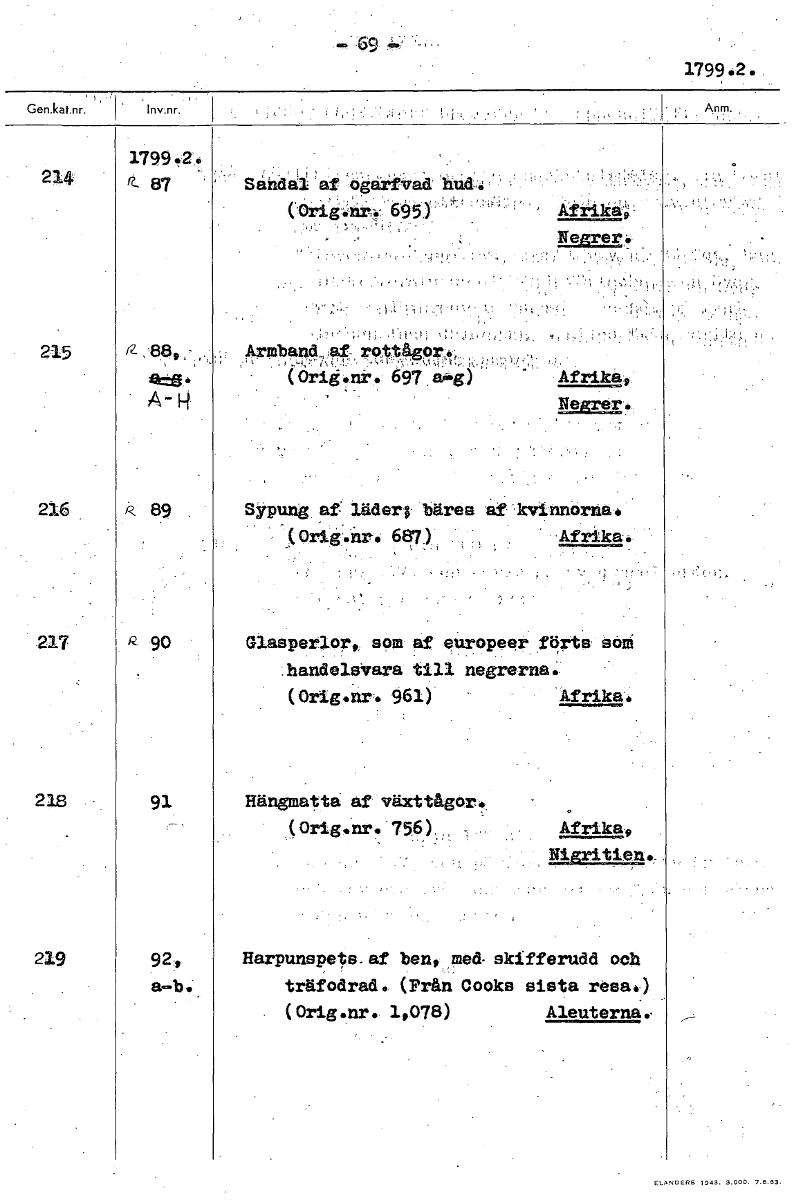 • 179982. 1.799.2. 214 Sandal af ogarTvad COrlie 6§ 5 ) • Negrer: • 215 Argband..,,af- rott4gor.., (Orig.nr. 697 a'g Afrika Negrer. 216 R 89 Sypung af: läder" bäres af- kvinnorna: 687,) Afrika. 217 90 G... Visa hela