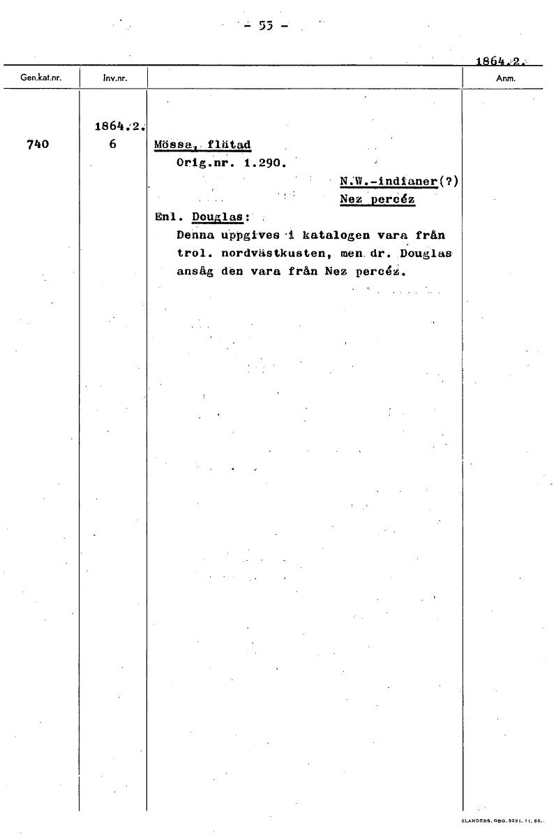 • Boksida ur Etnografiska museets generalkatalog.