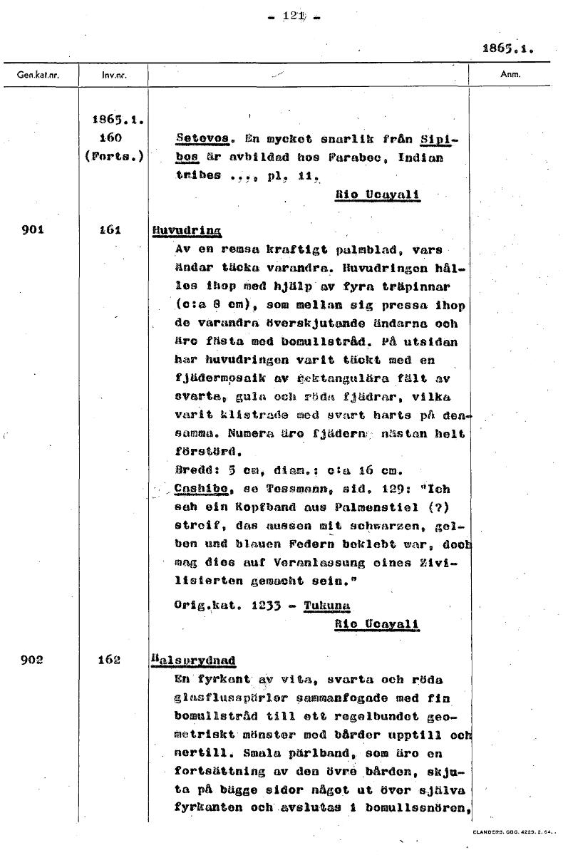 1865,1. 1865.1. 160 Setevos. 8n mycket snarlik från URI- (Ports.) bon är avbildad hos Paraboc, Indian teibes ply Rio Vcayali 901 161 Huvudrin Av on remsa kraftigt palmblad, vars ändar täcka varandra. ...