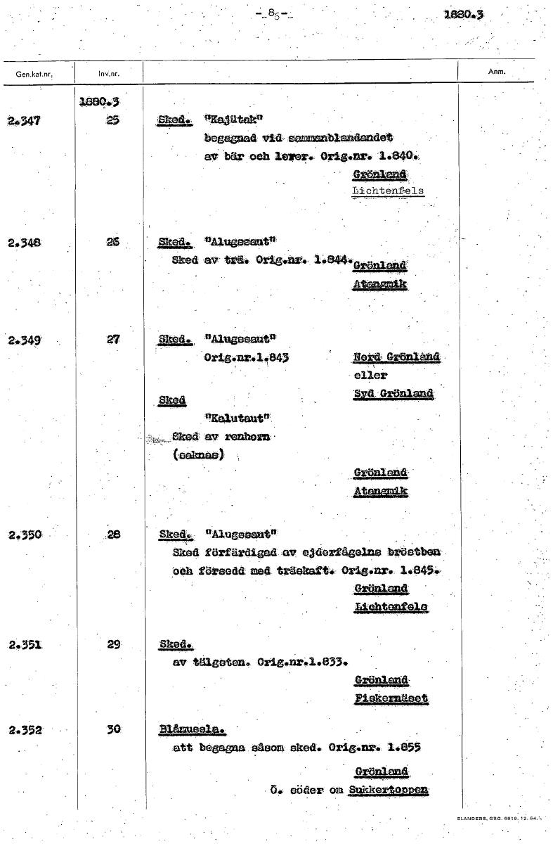 1880+3 2447 25 ~it' begagnad i4econanblandandet av här och lereg>+ Orisenr+ 1.840+ • G Lichten.fels 2.348 Sked+ nitlugeeentit Sked av. trä+ Orig+nr+. 1+ 2+349' • nilluseecoatn Orig+nr+1+843 a eller adr Syd Grönituld "Xalutant" avrnhoirn. Grönland • Ateninnik 2+330 28 e. "Alugeacfnt" Sked förfärdigad _av ejderfåselne bröetben och fÖreedd med. träskaft+ Orig+nx+ 1.845+ .11y4n~ Lichtentele 2+351 29 Sked+ av tälgeteno 0 n.1.833. Gegga- Piekernäeet 2+352 30 Blå:mena+ att besegna såsom sked. Origartir. 1.855 söder on Stakortv1Pc0R [ocr]Stäng