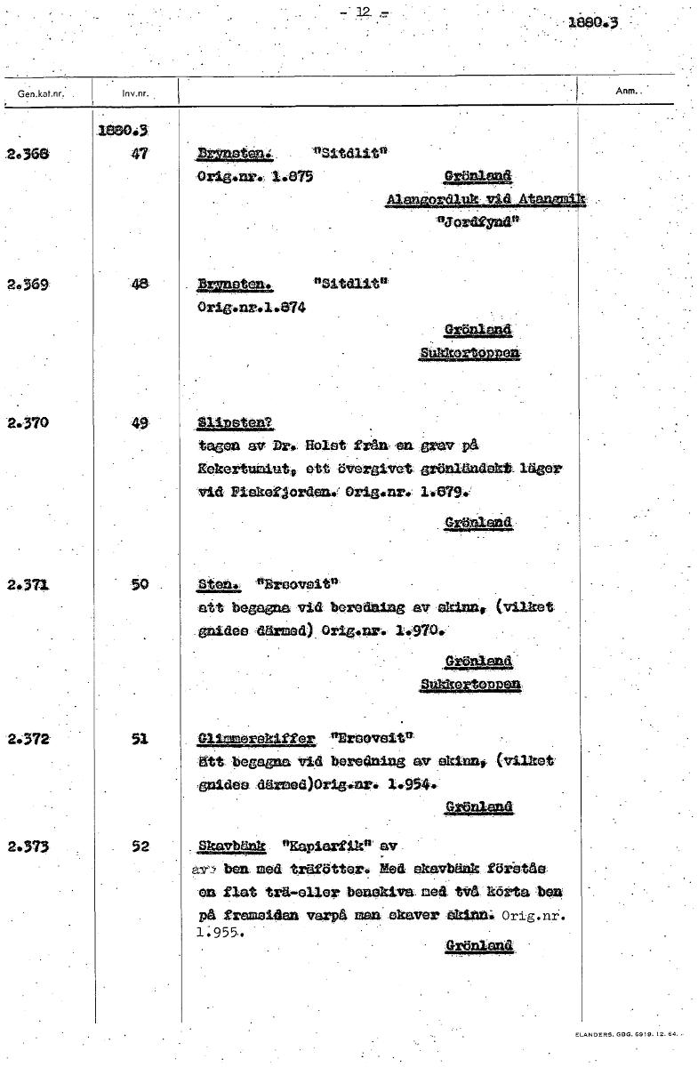 - 12 <= 188043 2.363 47 Sit • orig.nr. 1.875 Grata 2.369 ~at 8Sitd3.itn Orig.nr•1«874 2.370 49 Slipsten? tagen av Dr.: liols-t från en• ;grav på- Kekettutaitate ett ;avetuivet grönländskt. neer, Inske...Visa hela