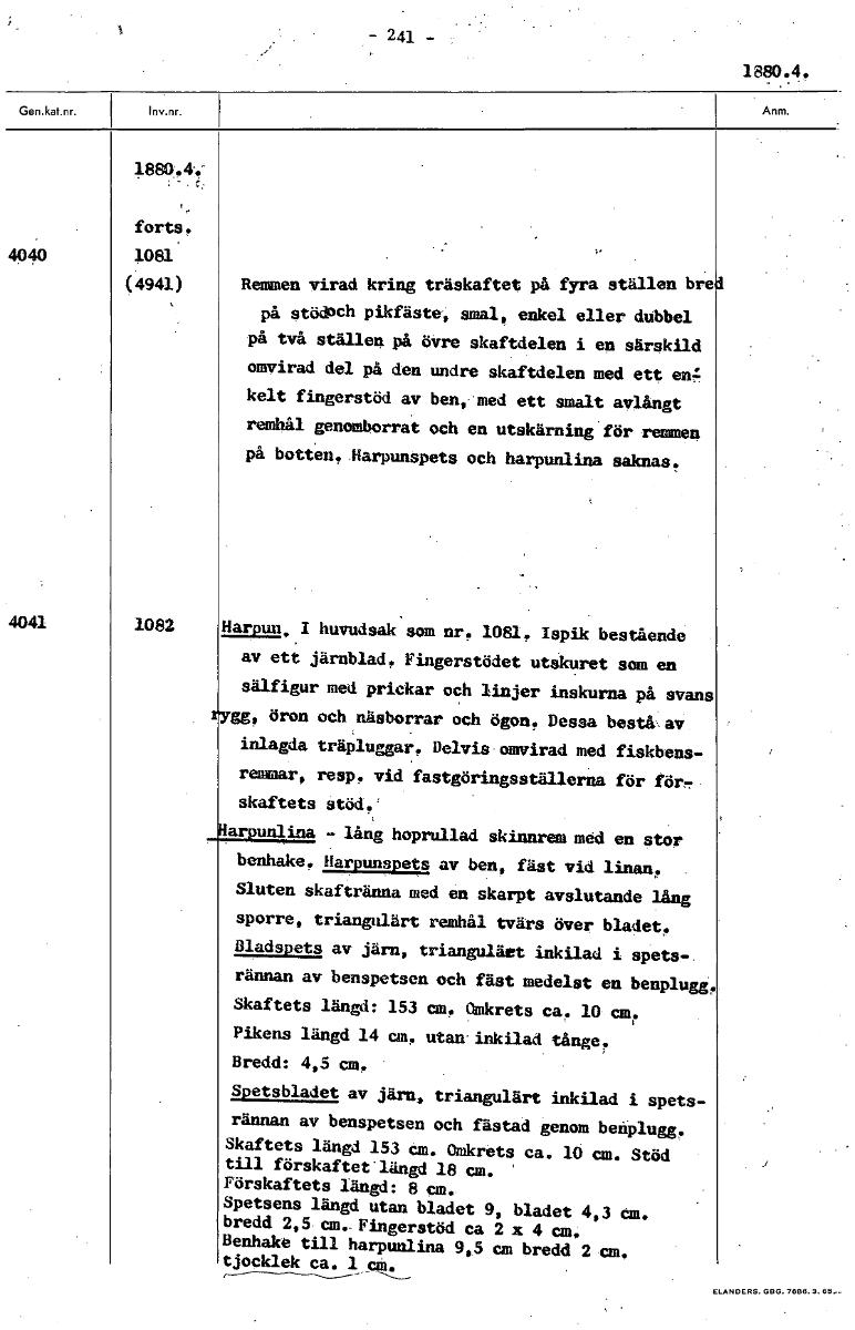 - 241 - 1880.4. 1.880.4 forts. 4040 1081 (4941) Remmen virad kring träskaftet på fyra ställen bre på stödoch pikfäste, smal, enkel eller dubbel på två ställen på övre skaftdelen i en särskild omvirad ...