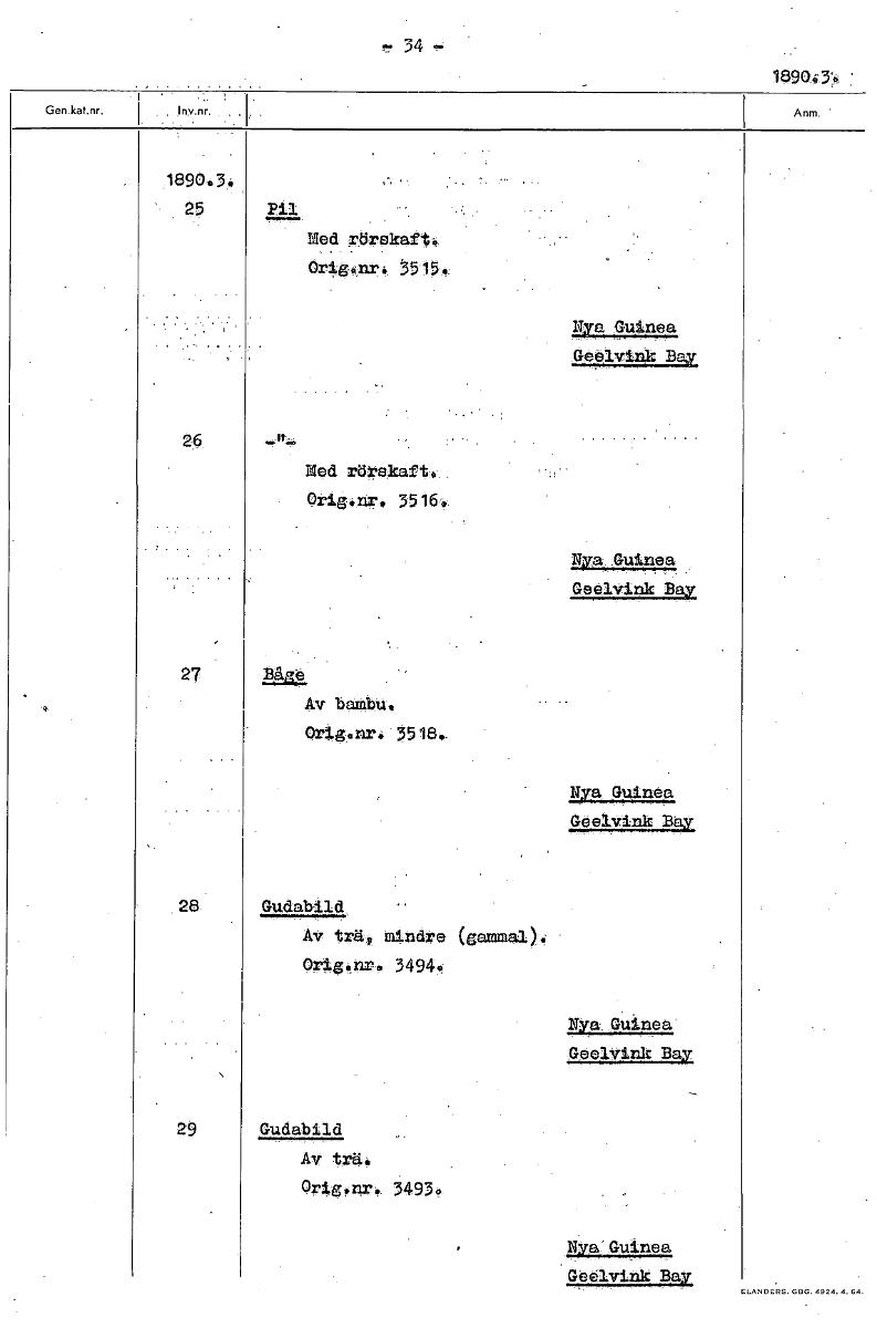 • 34 189043:, 1890.3. 25 Fil Med rdrekafth 6rS.S111".. 5515. Nya Nya Guinea Bay 26 Med röTekaft. . Orig.nr. 3516, Nya—Guinea Geelvink Bay 27 Båge Av bambu. Orig.nr. 3518. Nya. Guinea Geelvink Ray 28 Gud... Visa hela