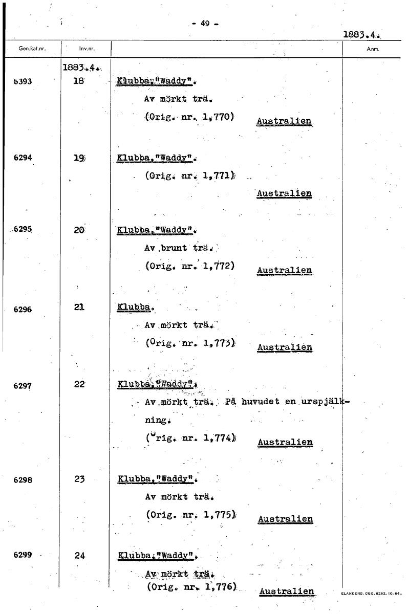 • 1883.4., 18' Klubba4."Waddy": Av m3rkt trä-. (Orig. nr, 4770) Australien Klubba,"Waddy": (Orig. nr. 1,77» Australien • Klubba,"Waddy" Av „brunt (Orig. nr.' 4772) Australien 23. pubba. Av <mörkt träd1 ... Visa hela