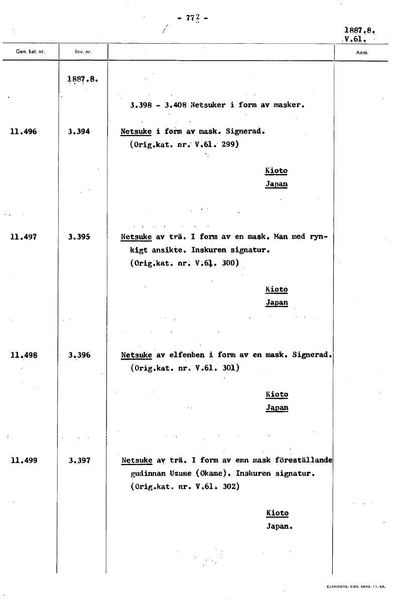772 1887.8. V,4T • 1887.8. 3.398 - 3.408 Netsuker i form av masker. 11.496 3.394 Netsuke i form av mask. Signerad. (Orig.kat. nr. V.61. 299) Kioto Japan 11.497 3.395 Netsuke av trä. I form av en mask,...Visa hela
