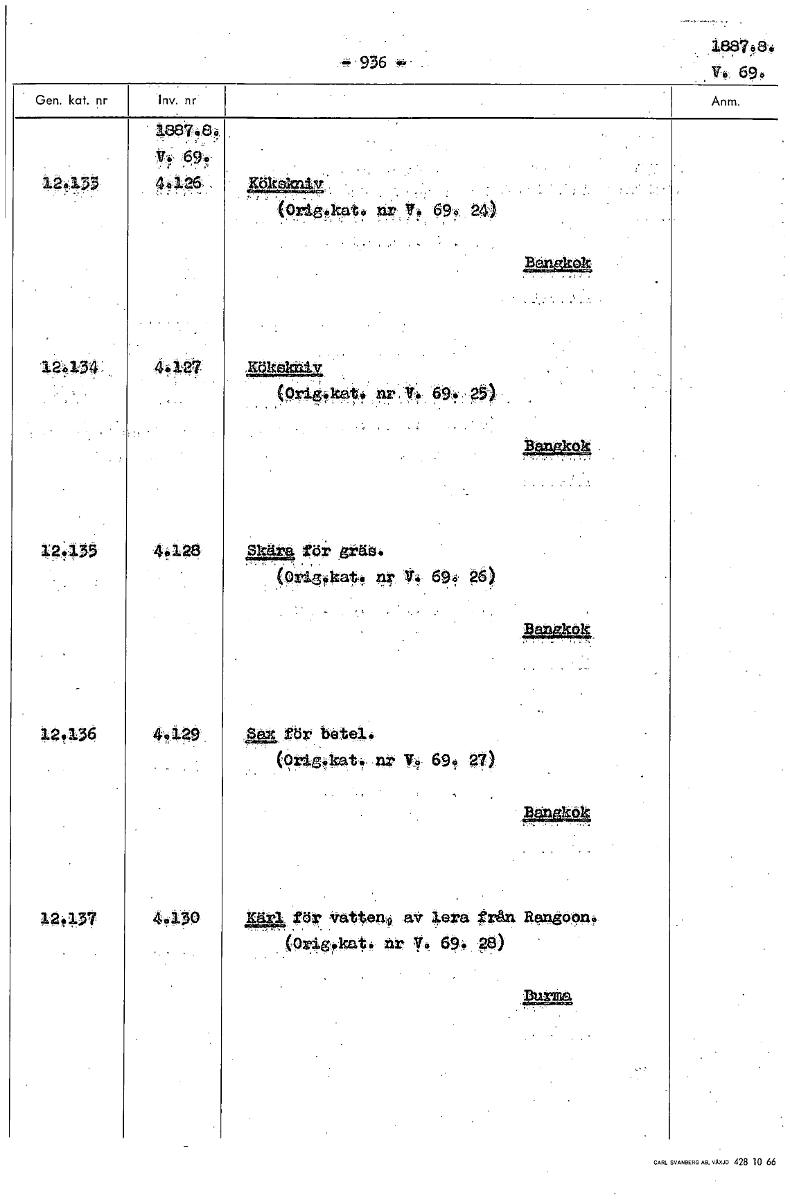 • Boksida ur Etnografiska museets generalkatalog.