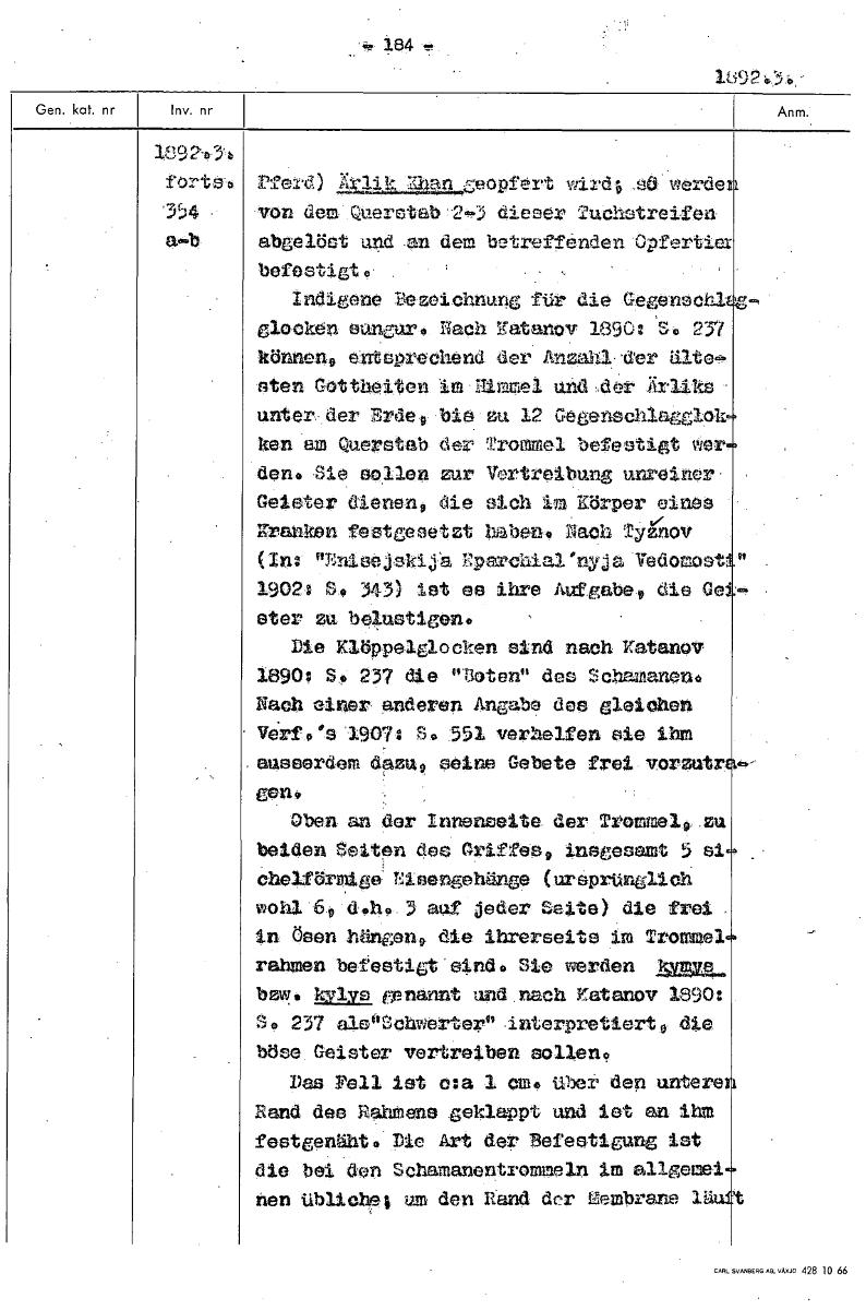 • Boksida ur Etnografiska museets generalkatalog.